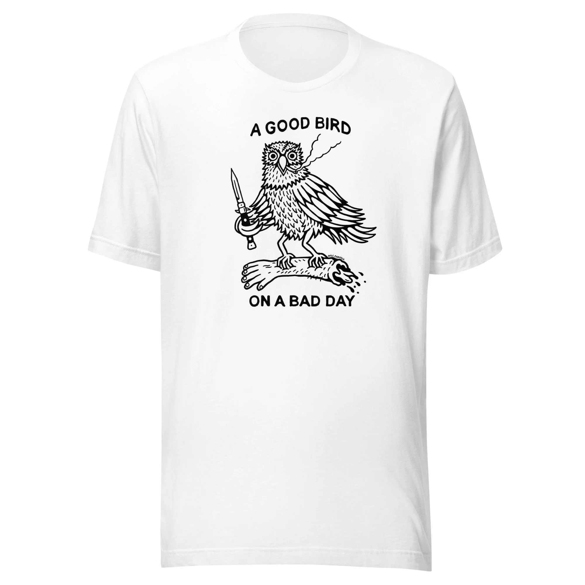 Merch › A Good Bird On A Bad Day - Tee Image 1 of 1 A Good Bird On A Bad Day - Tee $23.00 A Good Bird On A Bad Day - Tee Printed and shipped by Printful • 100% combed and ring-spun cotton (Heather colors contain polyester) • Fabric weight: 4.2 oz./yd.² (142 g/m²) • Pre-shrunk fabric • Side-seamed construction • Shoulder-to-shoulder taping • Blank product sourced from Nicaragua, Mexico, Honduras, or the US Disclaimer: The fabric is slightly sheer and may appear see-through, especially in lighter colors or under certain lighting conditions. Size: XS S M L XL 2XL 3XL Add To Cart Added! A Good Bird On A Bad Day - Tee Printed and shipped by Printful • 100% combed and ring-spun cotton (Heather colors contain polyester) • Fabric weight: 4.2 oz./yd.² (142 g/m²) • Pre-shrunk fabric • Side-seamed construction • Shoulder-to-shoulder taping • Blank product sourced from Nicaragua, Mexico, Honduras, or the US Disclaimer: The fabric is slightly sheer and may appear see-through, especially in lighter colors or under certain lighting conditions.
